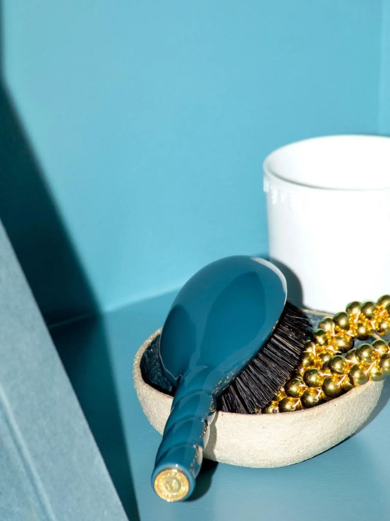This blue hairbrush is artisanally hand-crafted in France from sustainable materials. Chic and lightweight, it is designed for effortless on the go hair care and, when used regularly, reduces the use of traditional hair products by half. The perfect gift for her birthday, anniversary or just-because.