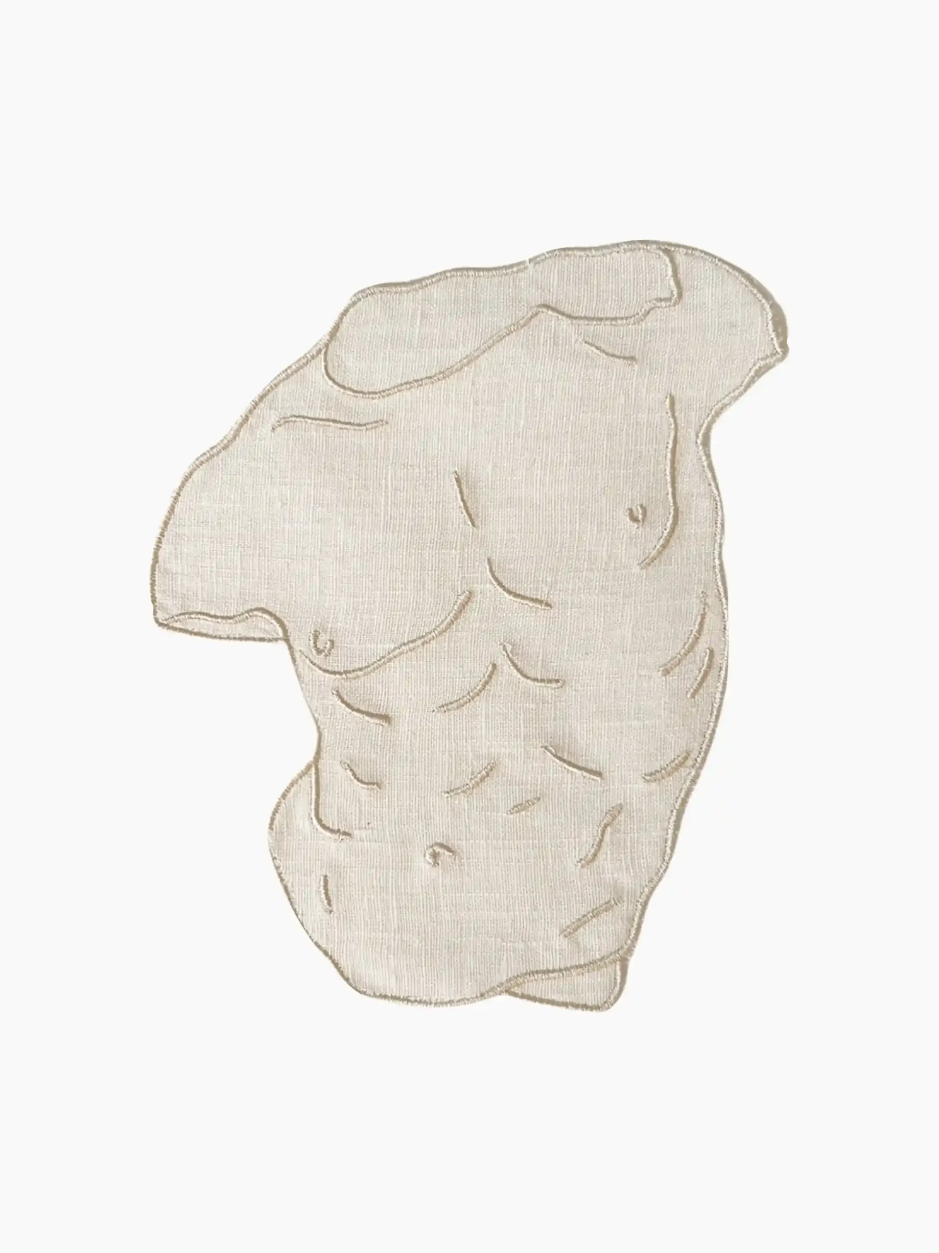 This set of four bust cocktail napkins is crafted from cream linen and finished with Italian cotton embroidery. They make the perfect gift for the host who’s known for their particularly weighty pour.