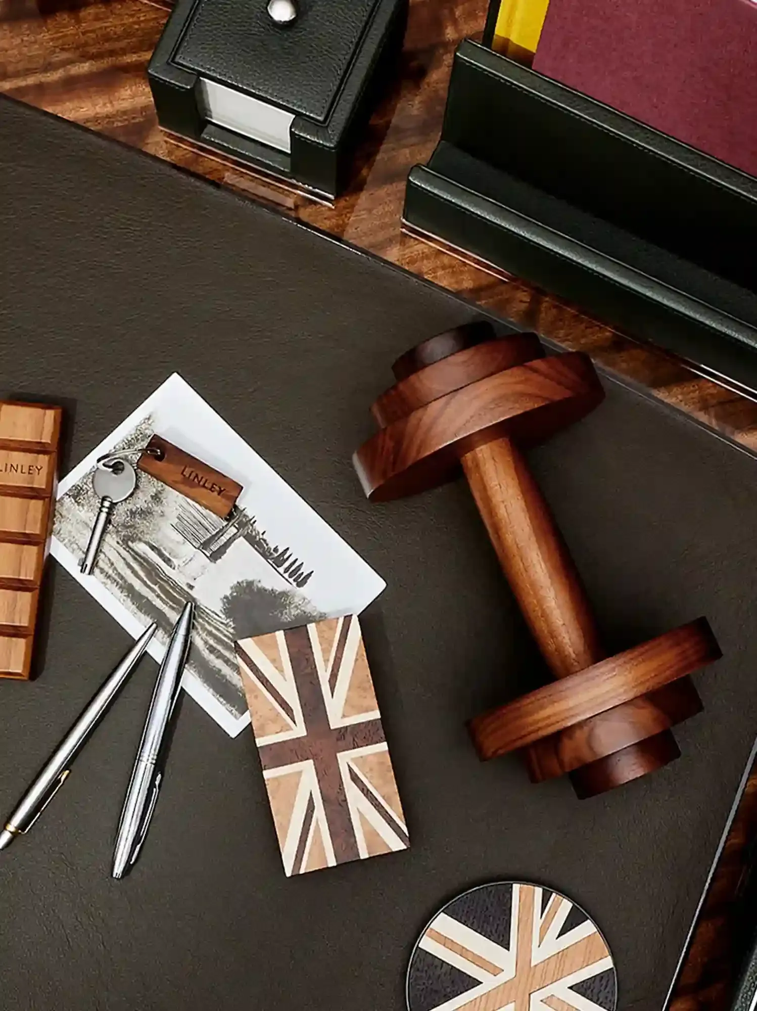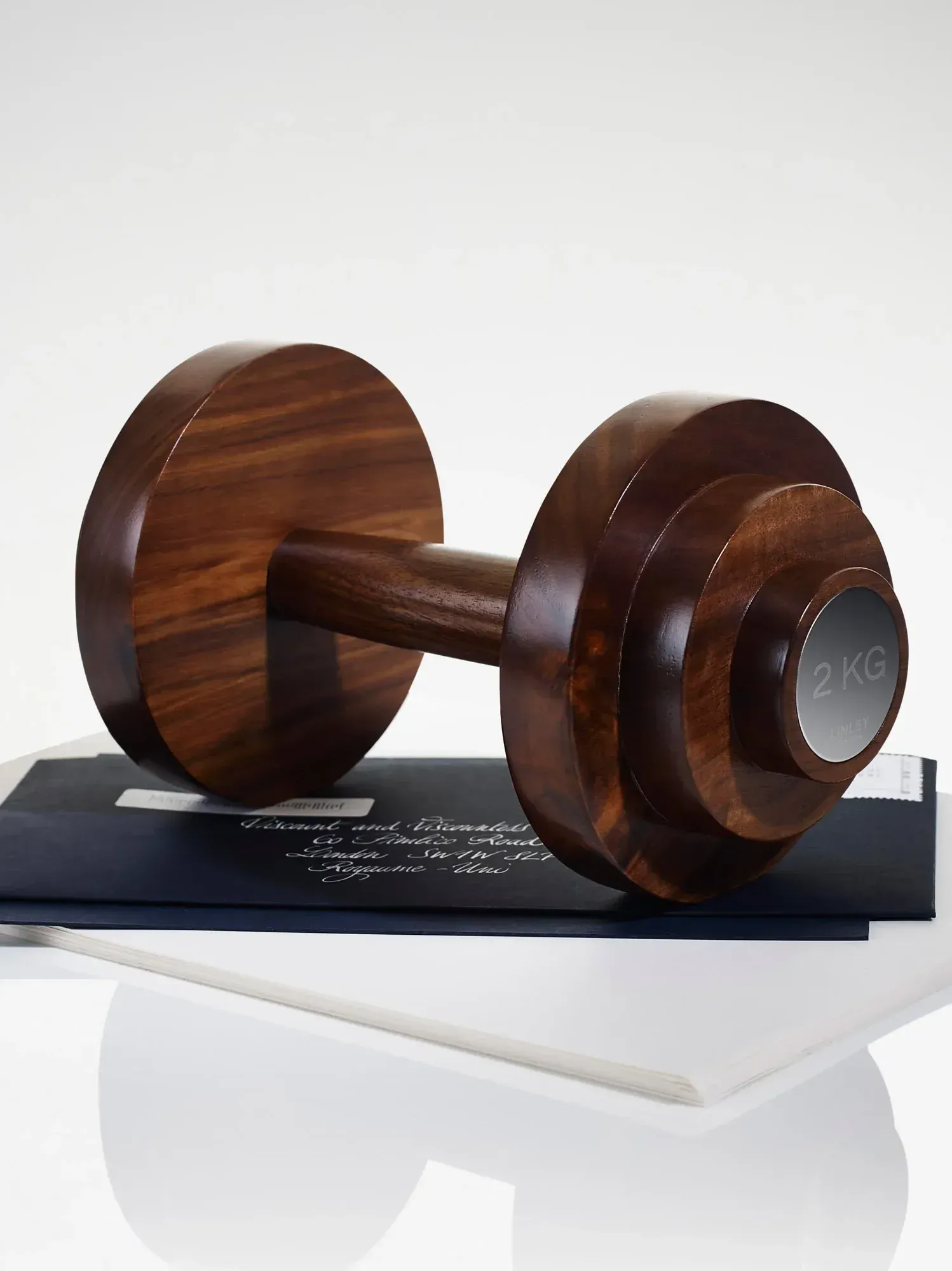 A desk essential with a sense of humour and a little heft. Crafted in walnut and weighing a precise two kilograms, this dumbbell-shaped paperweight is equal parts form and function. Perfect for the home office or the corner office, no spotter required.