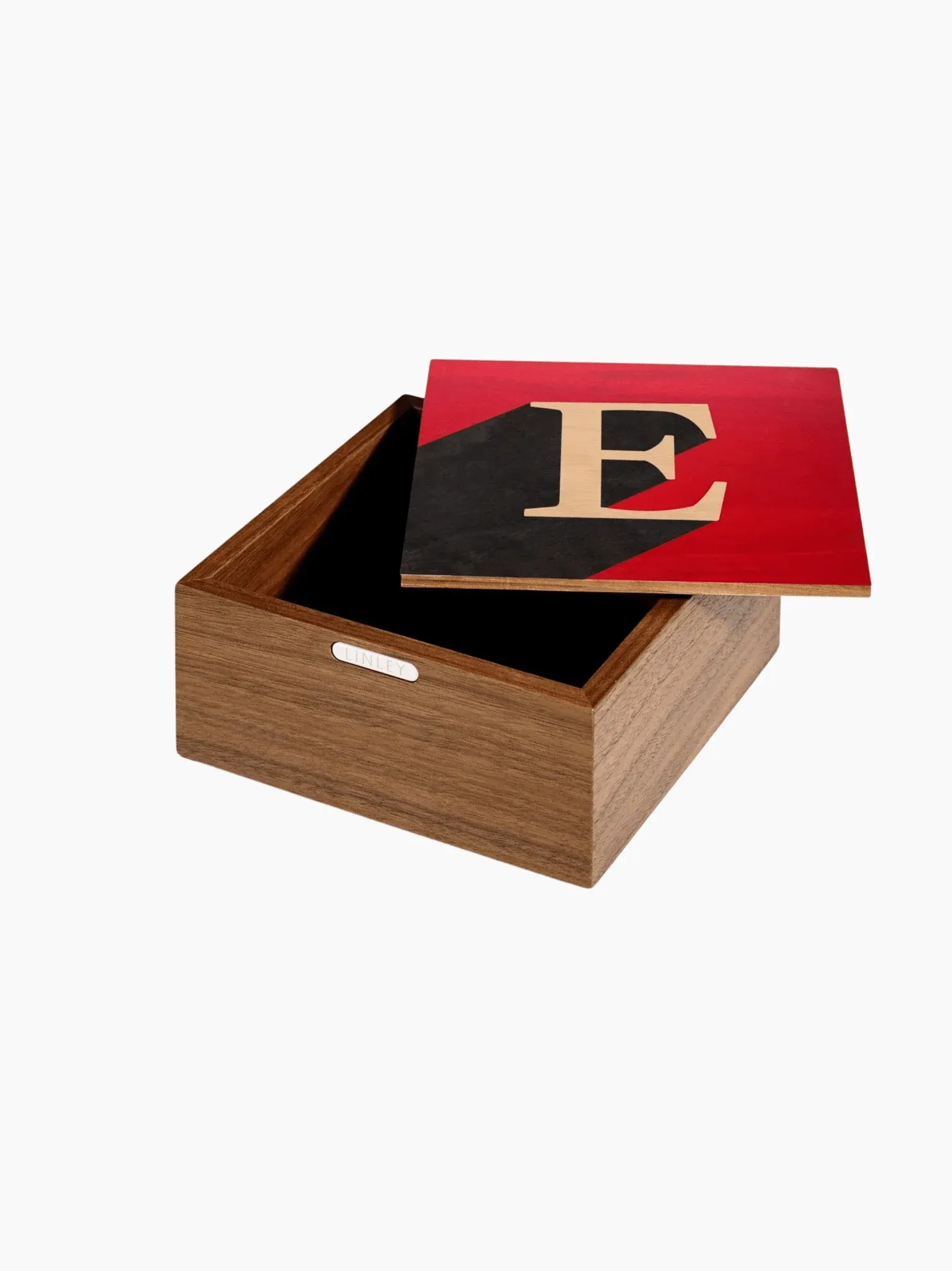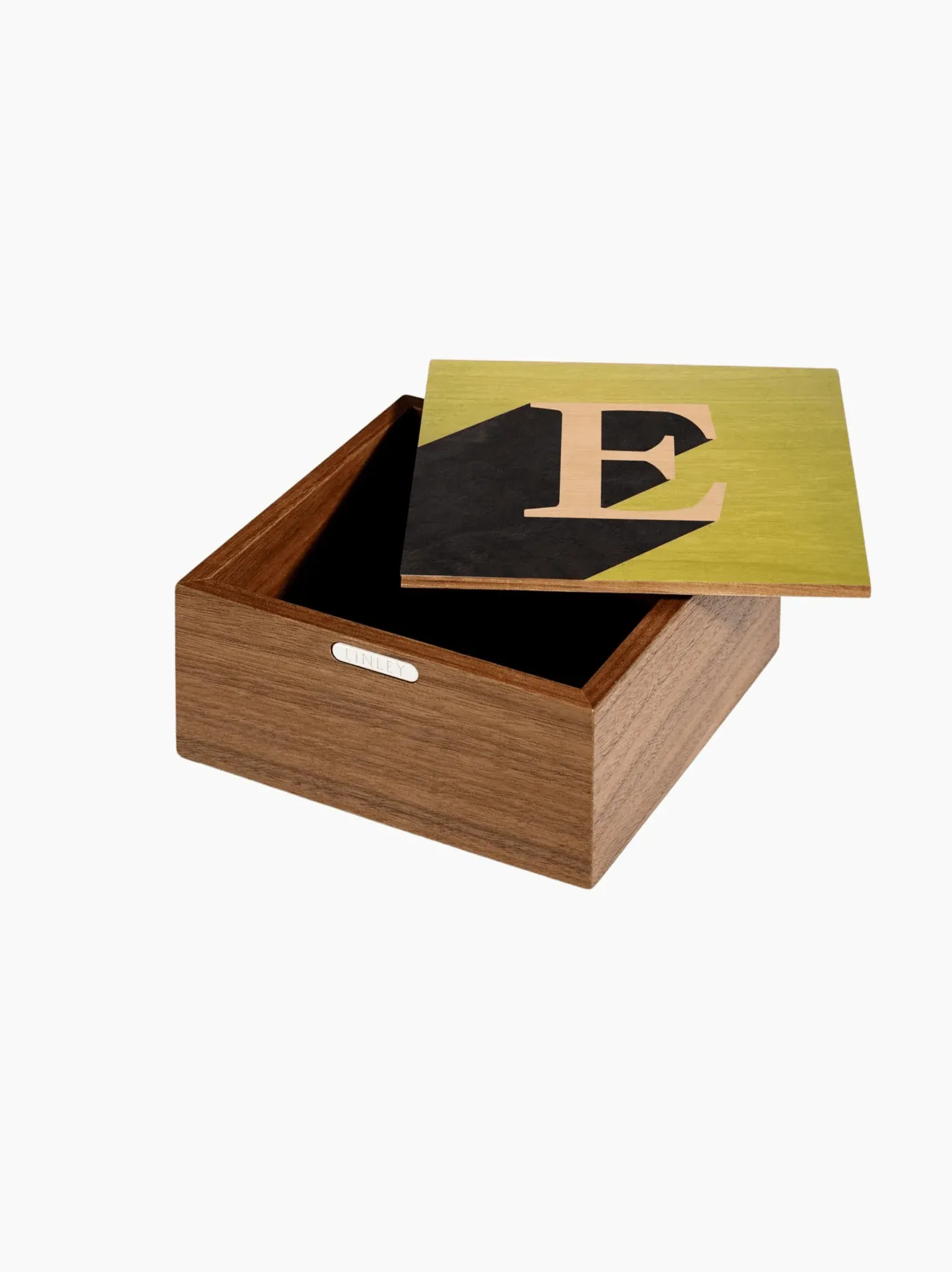 This luxury trinket box features an E initial against a vibrant lime background finished with a bold marquetry inlay. A unique gift for birthdays and christenings or a thoughtful thank you.