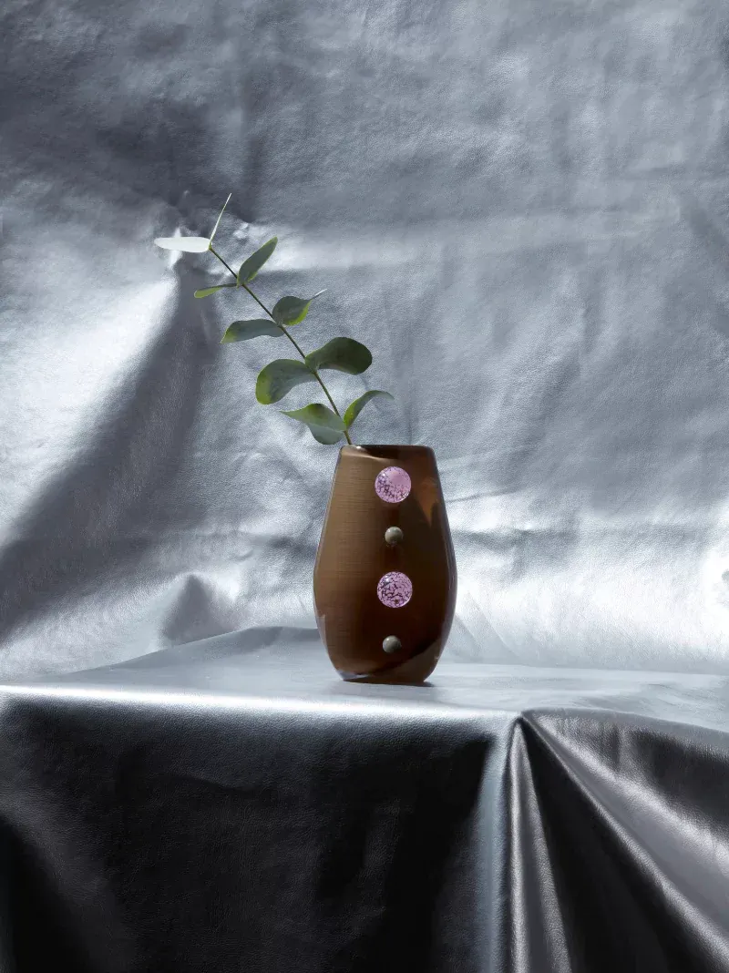 This mouth-blown vase comes in an organic silhouette with contrasting pink sphere detail. Whether filled with flowers or standing alone as a sculptural piece, its playful design adds a unique touch to your space, making every interior feel a little more special.