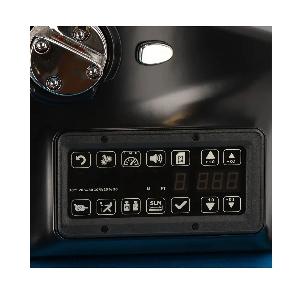 - Digital control panel for +/- tension adjustment, 9 memory settings, lbs/kgs, pulling speed, pre-stretch, knot function, and internal diagnostic check