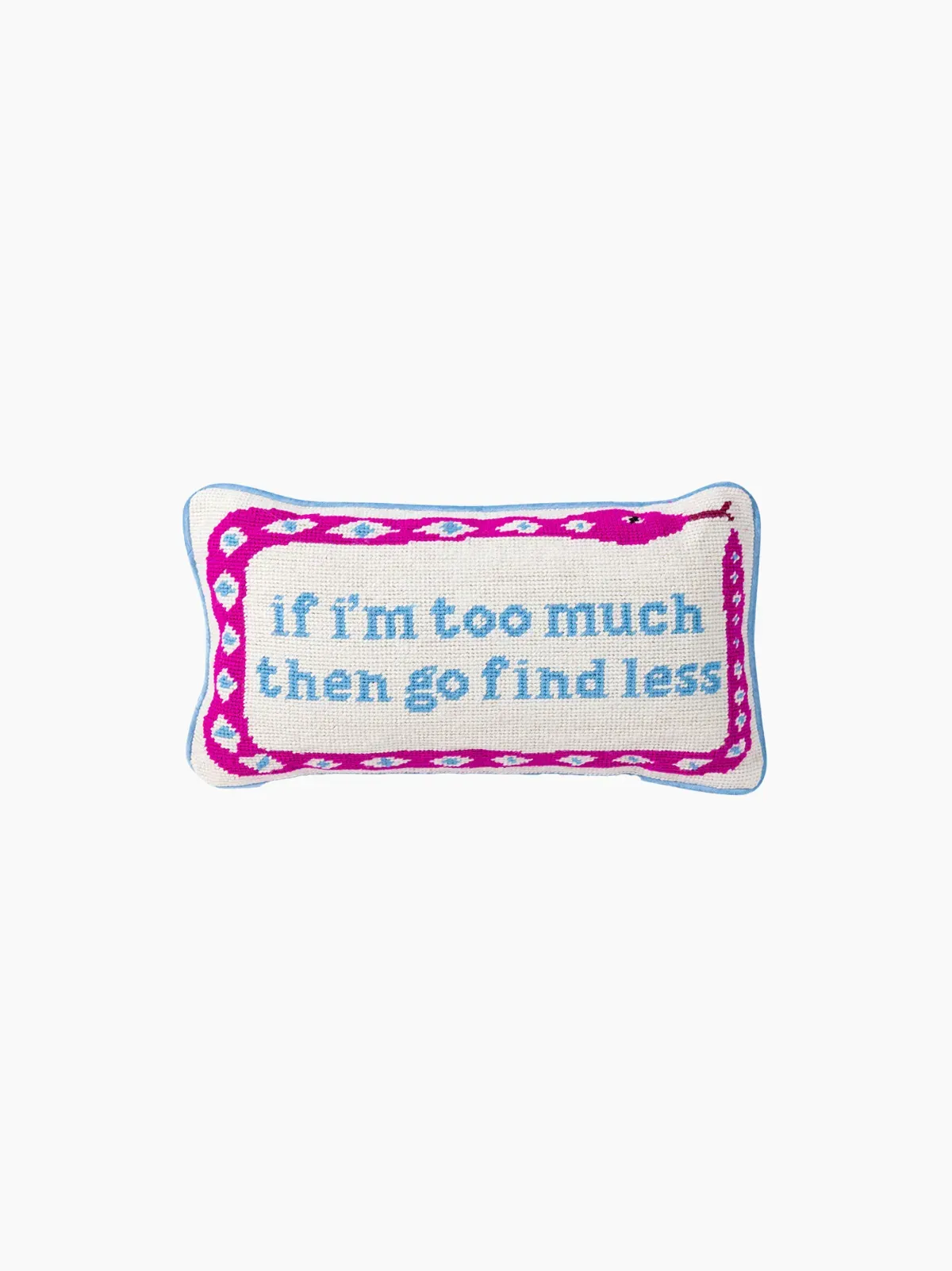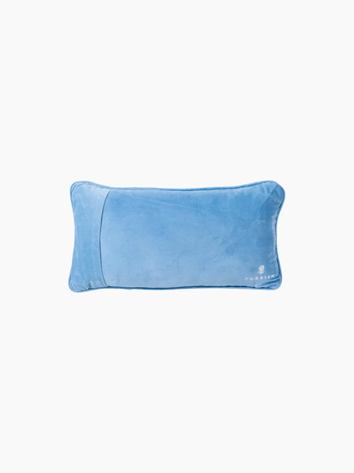 Hand embroidered in wool with a plush blue velvet back, this needlepoint pillow makes a statement interior feature. The perfect quirky gift for their new home or just-because present for the interior-obsessed.