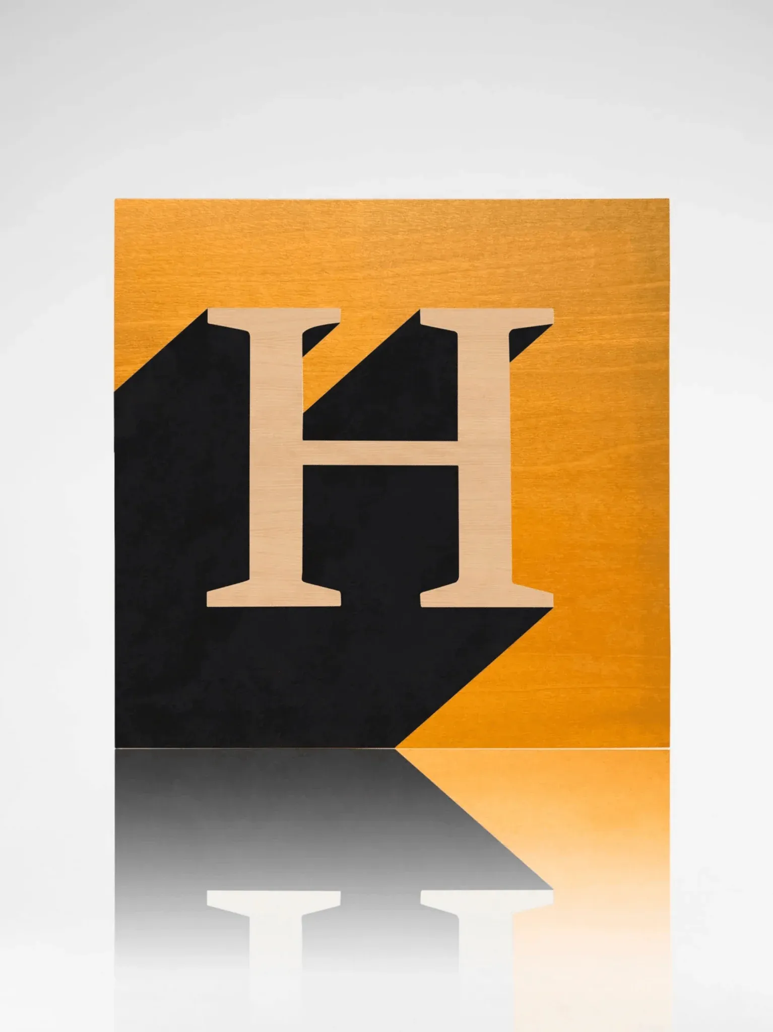 This luxury trinket box features an H initial against a contemporary amber background finished with a bold marquetry inlay.