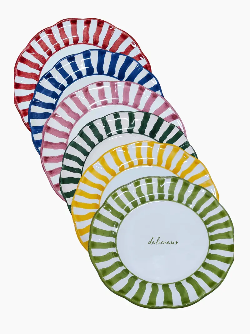 This scalloped stripe quote plate set is dressed in iconic French phrases, adding a little je ne sais quoi to every dish. Whether you’re serving croissants or coq au vin, these plates prove that dining is always more chic in French.