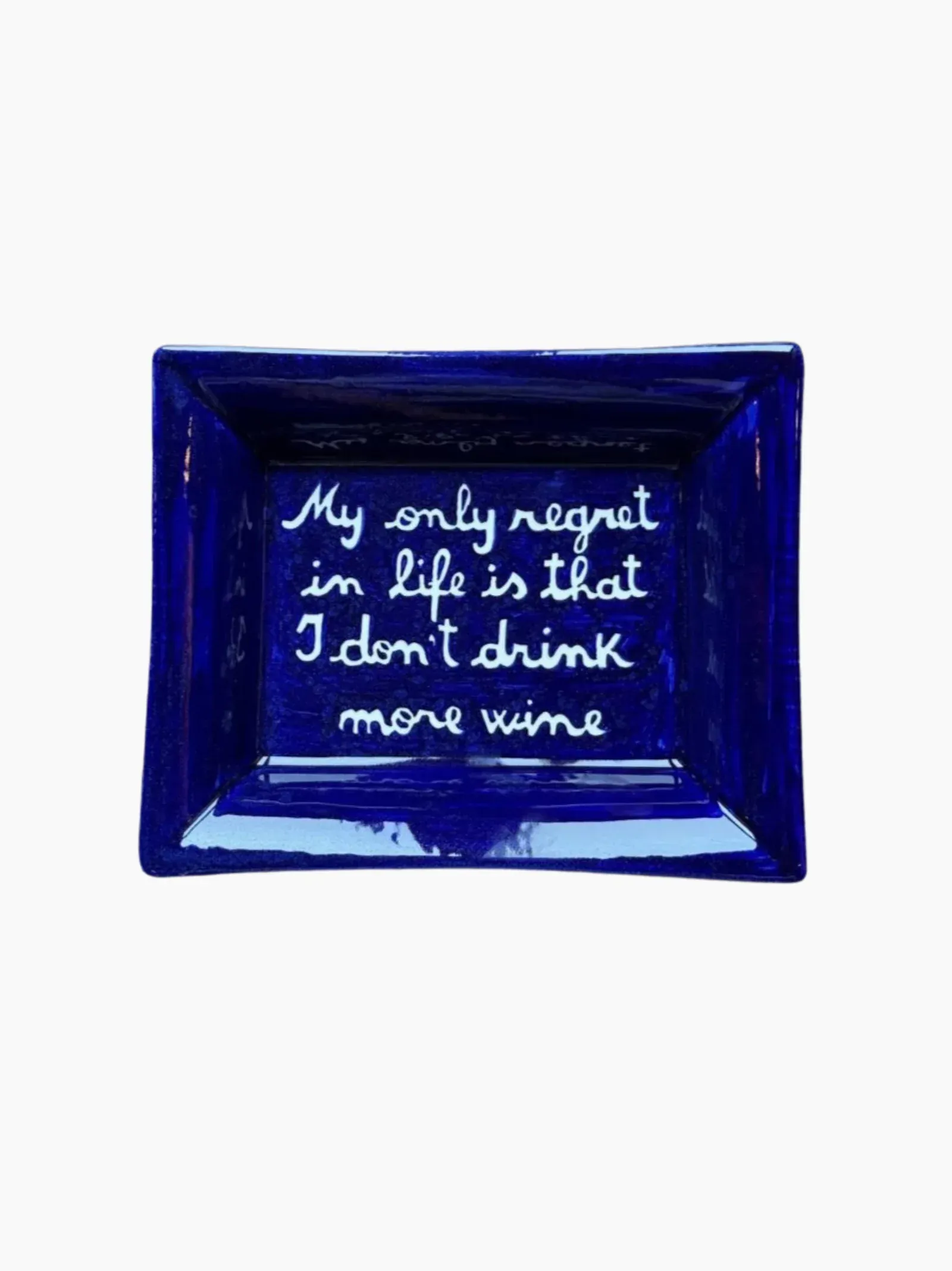 This ceramic dish is hand-painted in Italy. Featuring white text on a striking blue background, it makes a can’t-go-wrong gift for the avid socialite.