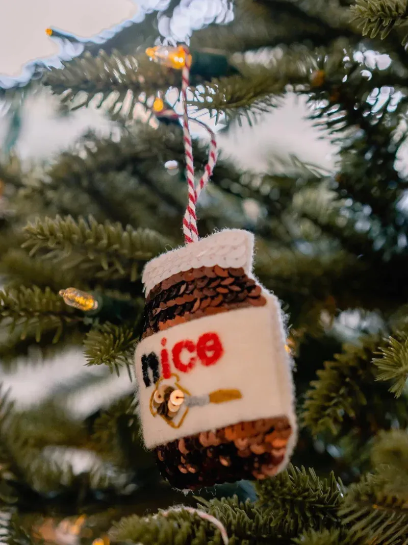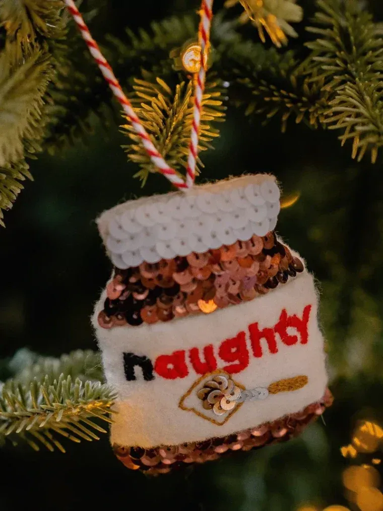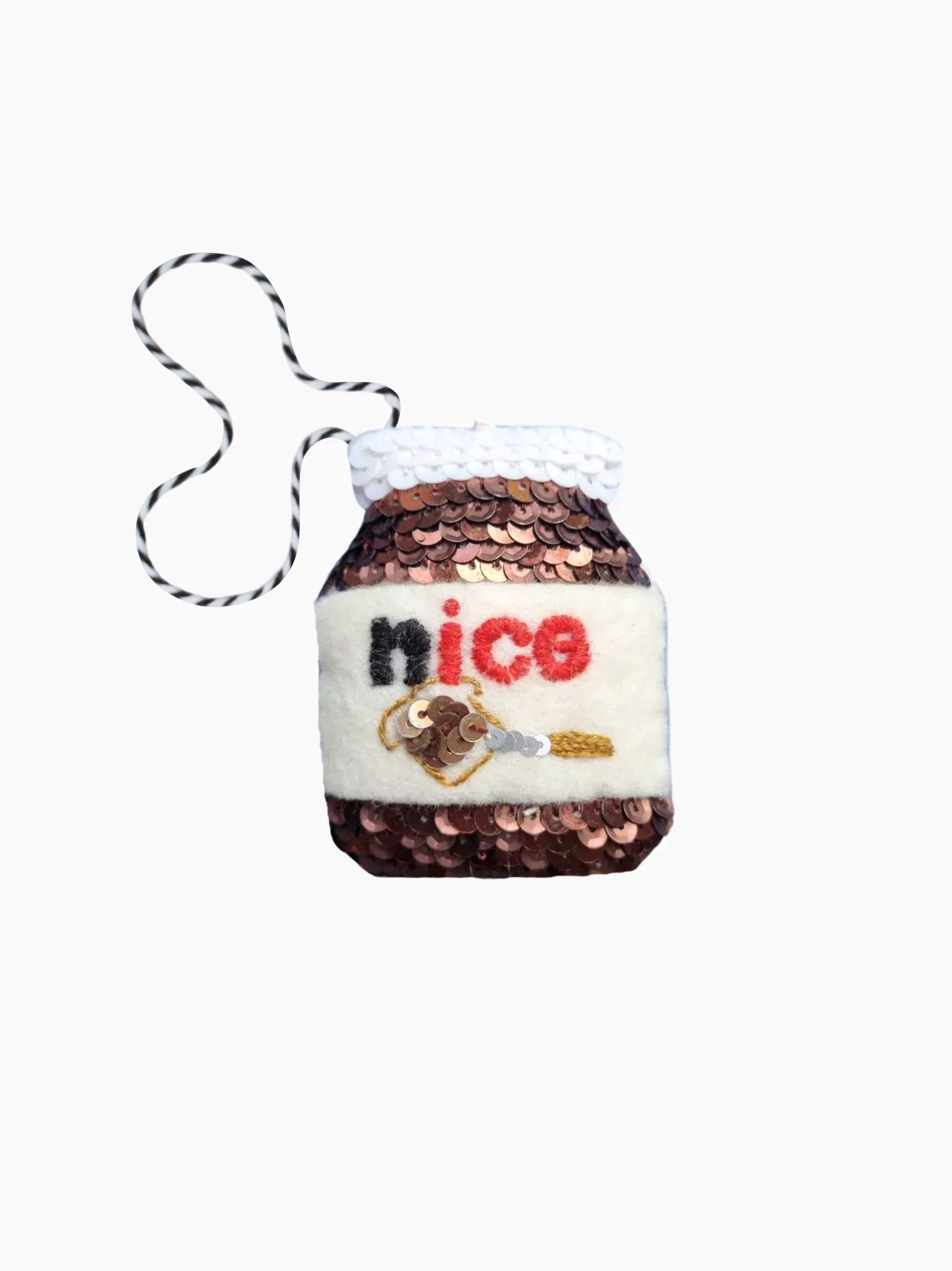 This sequinned ornament is hand-stitched in England onto wool felt. Featuring intricate sequin detail in a mix of matt and shiny finishes, it is the perfect gift for a foodie.