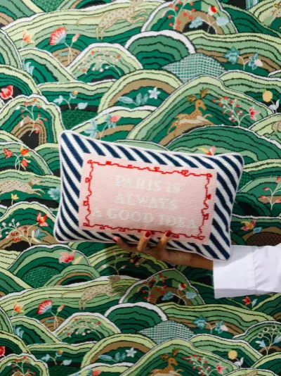 Hand embroidered in wool with a plush velvet back, this needlepoint pillow makes a statement interior feature. The perfect quirky gift for their new home or just-because present for the interior-obsessed.