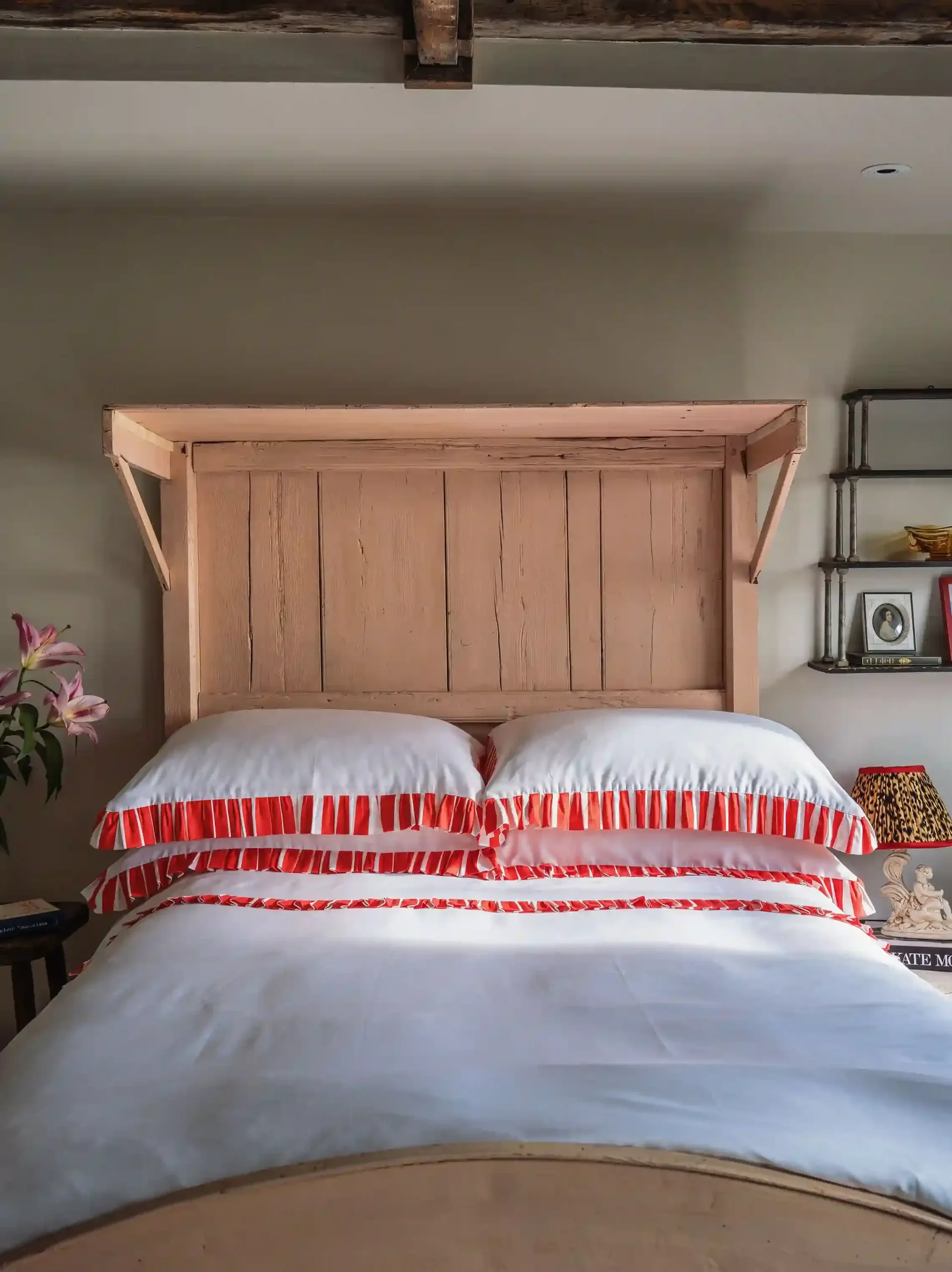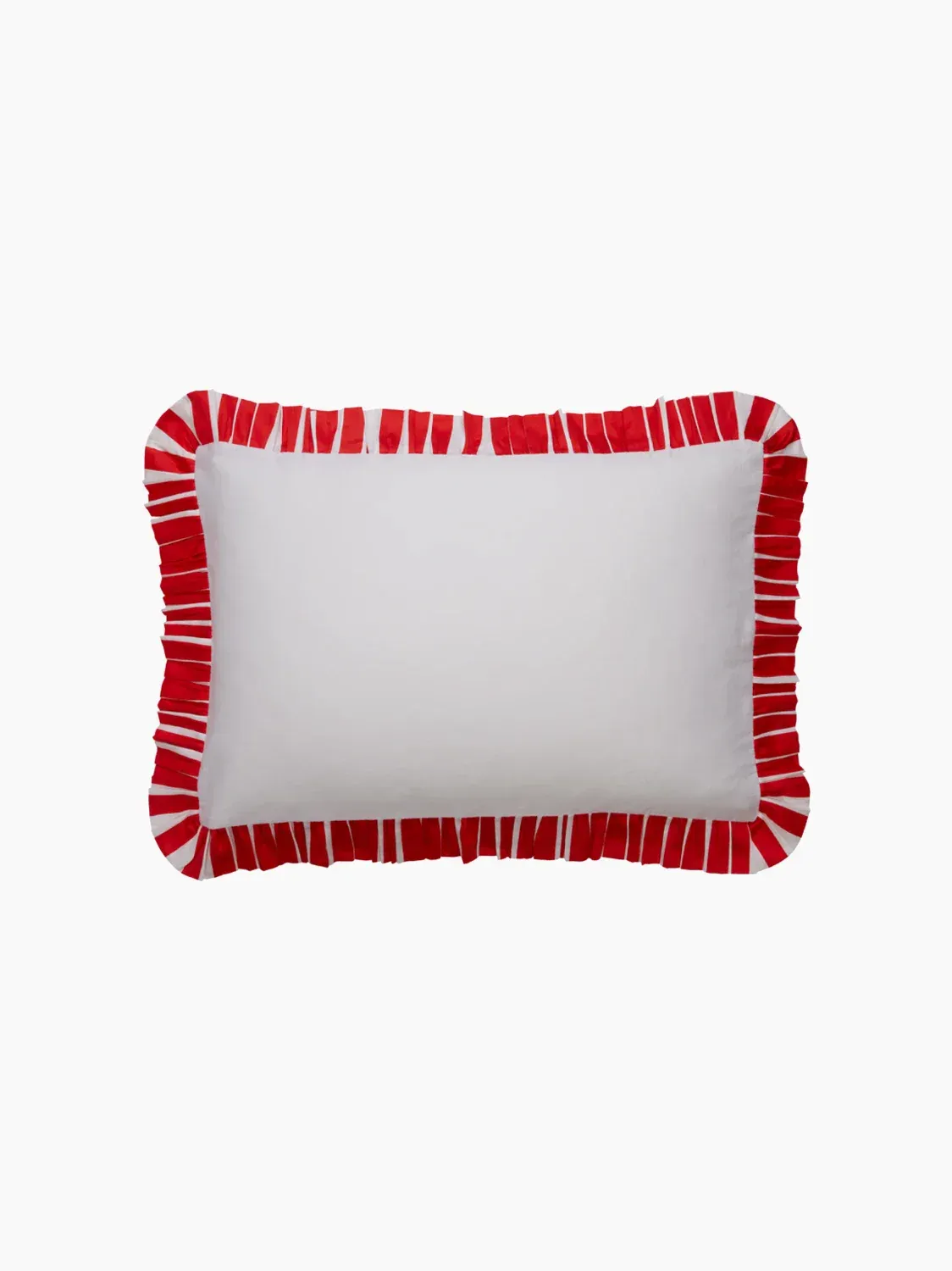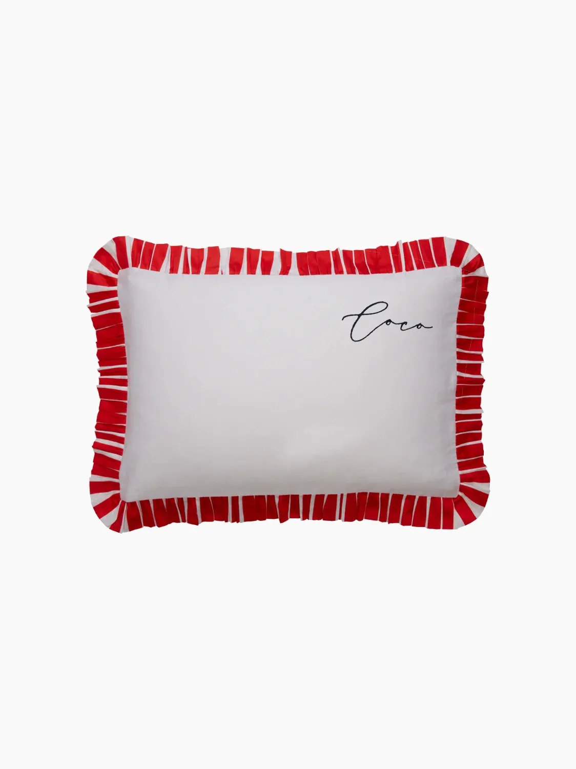 This luxe bedding set is ethically crafted from premium cotton sateen. Featuring a ruby red and white ruffled frill trim. Choose from a pillow case set or a full bed set and personalise for an elevated gift.