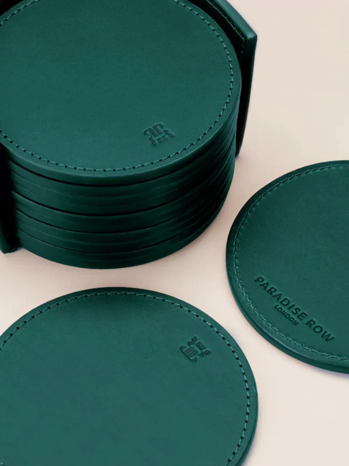 This coaster gift set is intricately crafted from sustainable vegetable-tanned leather. 12 coasters complete in a matching leather holder, it is the ultimate gift for life’s true bon vivants.