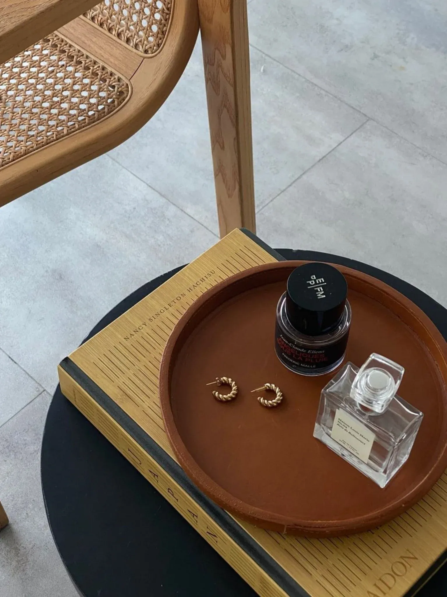 This tan leather trinket tray is crafted from sustainable vegetable tanned leather. Featuring intricate hand-stitching and personalised detail, it makes the perfect homeware gift. For keys, cufflinks, loose change, business cards or simply a chic interior feature.