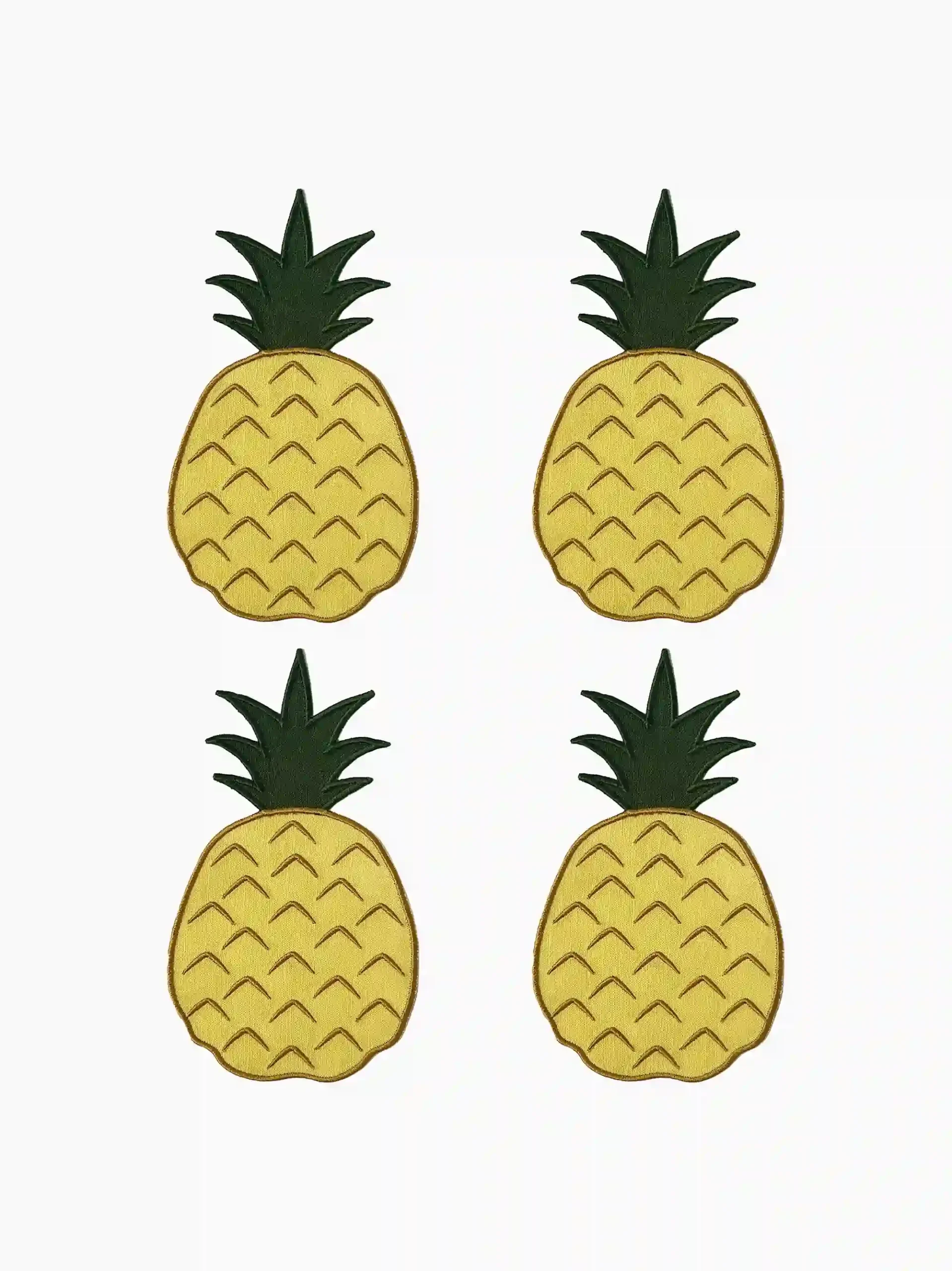 This set of four pineapple cocktail napkins is crafted from yellow and green linen and finished with Italian cotton embroidery. They make the perfect gift for the holiday enthusiast and add an artful touch to summer parties.
