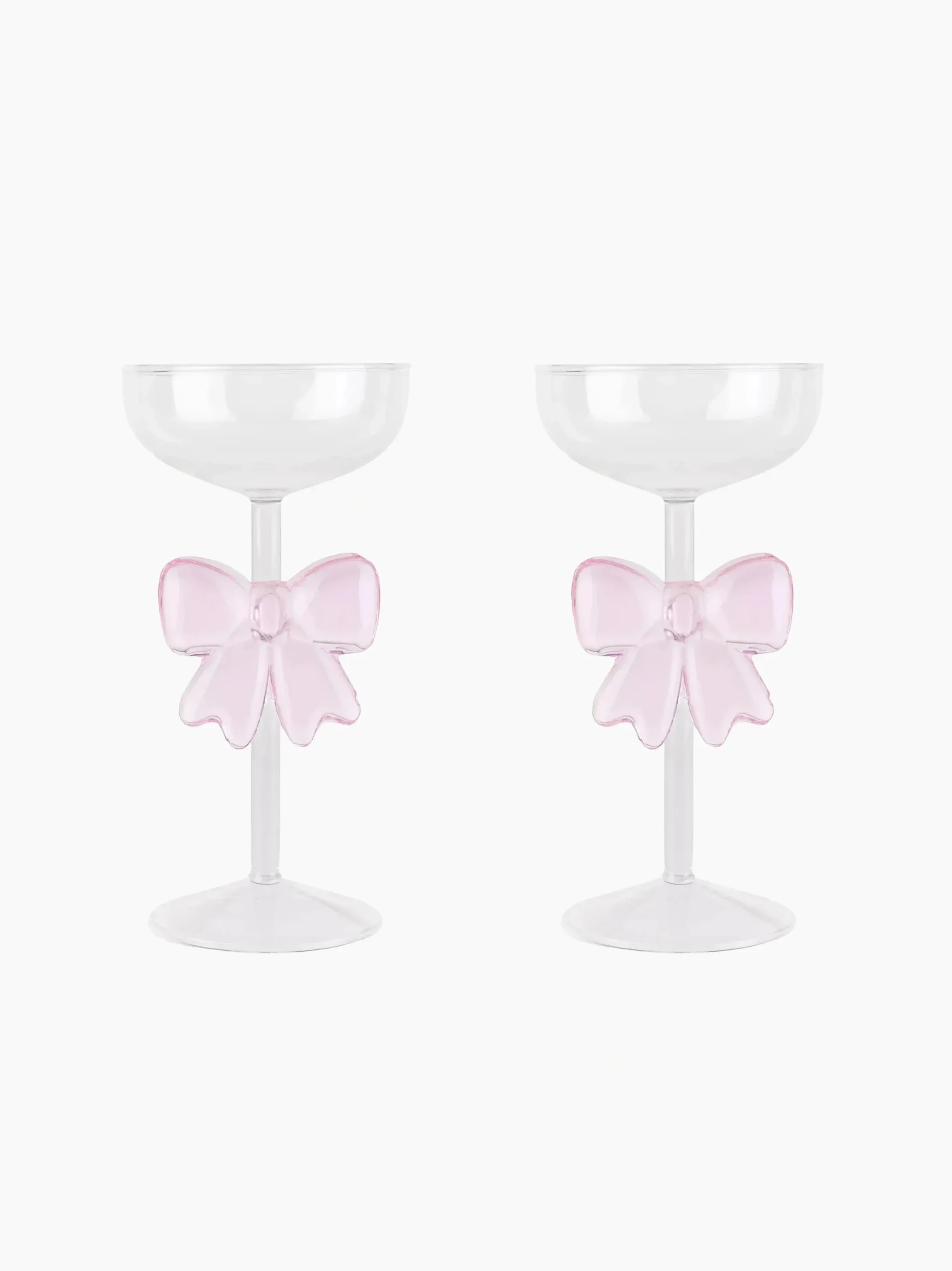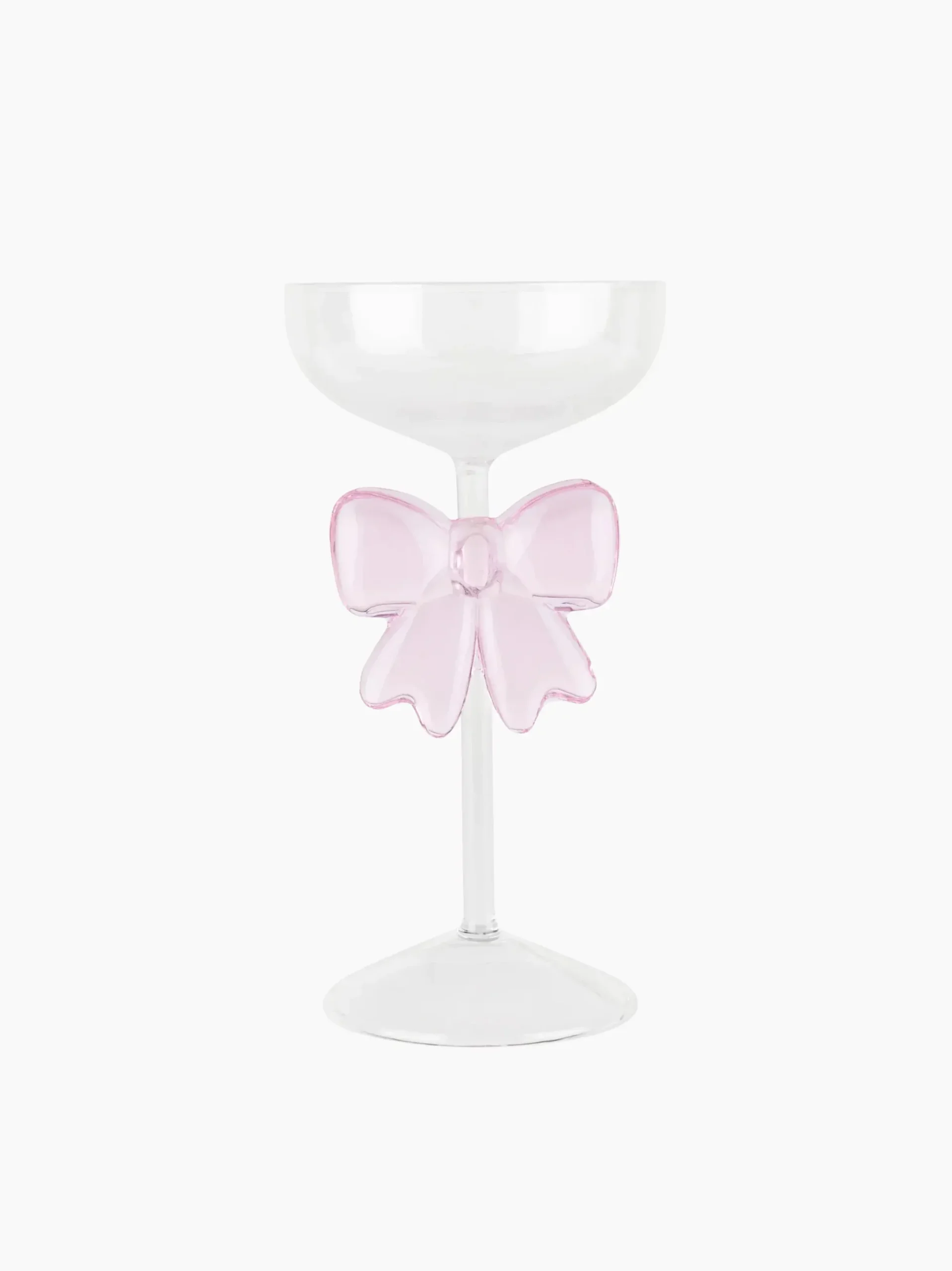 This coupe glasss feature an elongated stem and a wide bowl elegantly hand-embellished with a delicate pink bow detail. For adding a touch of fun to their bar cart, this is the perfect gift for the extravagant socialite.