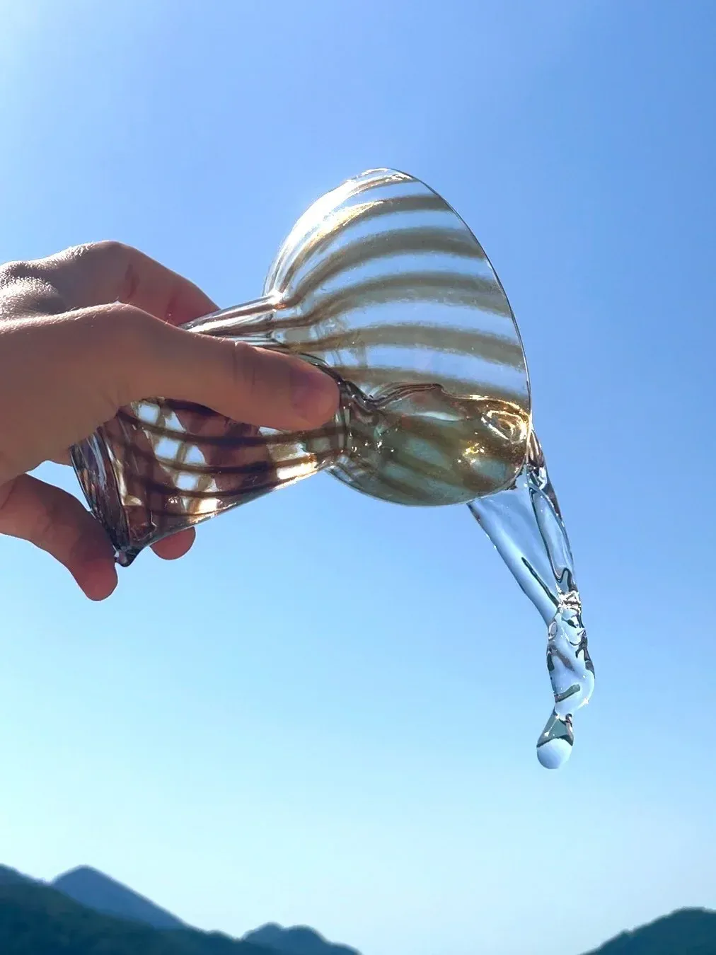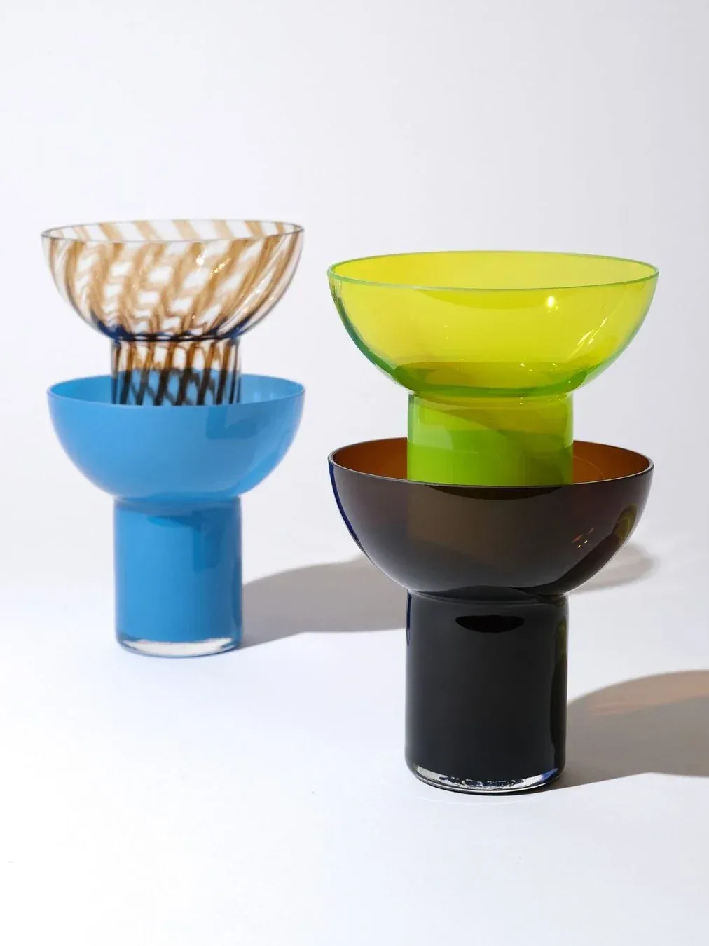 This set of 4 mouth-blown glasses blend both retro and contemporary flair in a chic crater-shape silhouette. With a smooth outer finish, the striking shape invites light to dance and reflect, making an eye-catching housewarming, birthday or just because gift for the homeware obsessed.