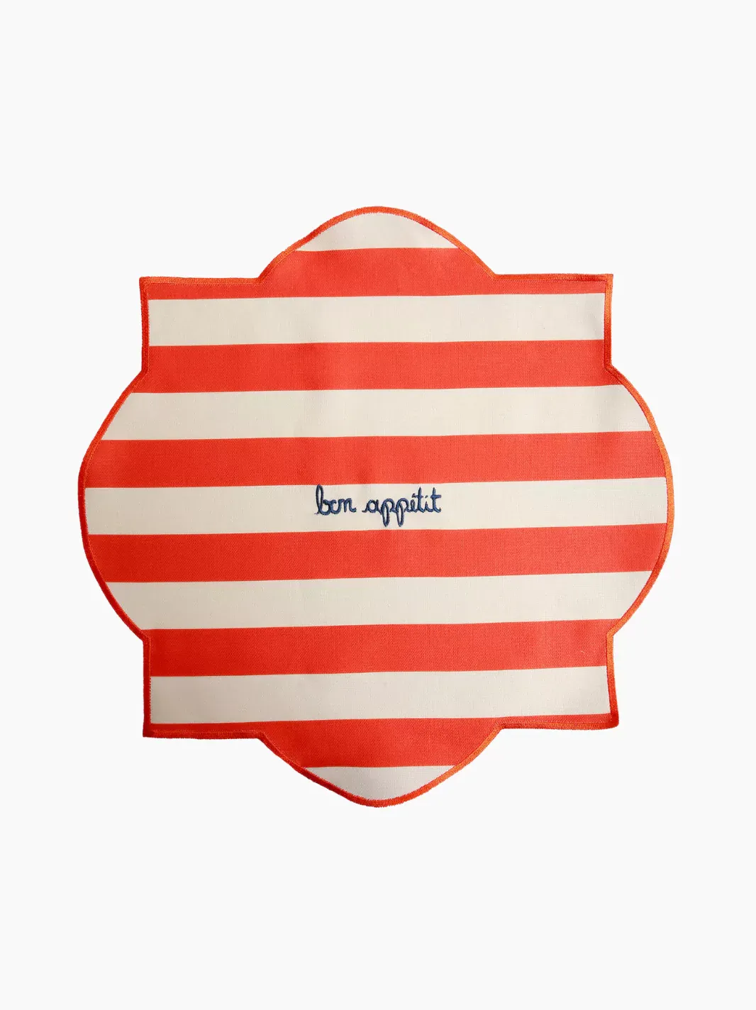 This set of striped placemats is an ideal eye-catching gift for the host with the most. Each in a unique shade finished with a geometric silhouette, they are a one-of-a-kind new home or birthday gift.