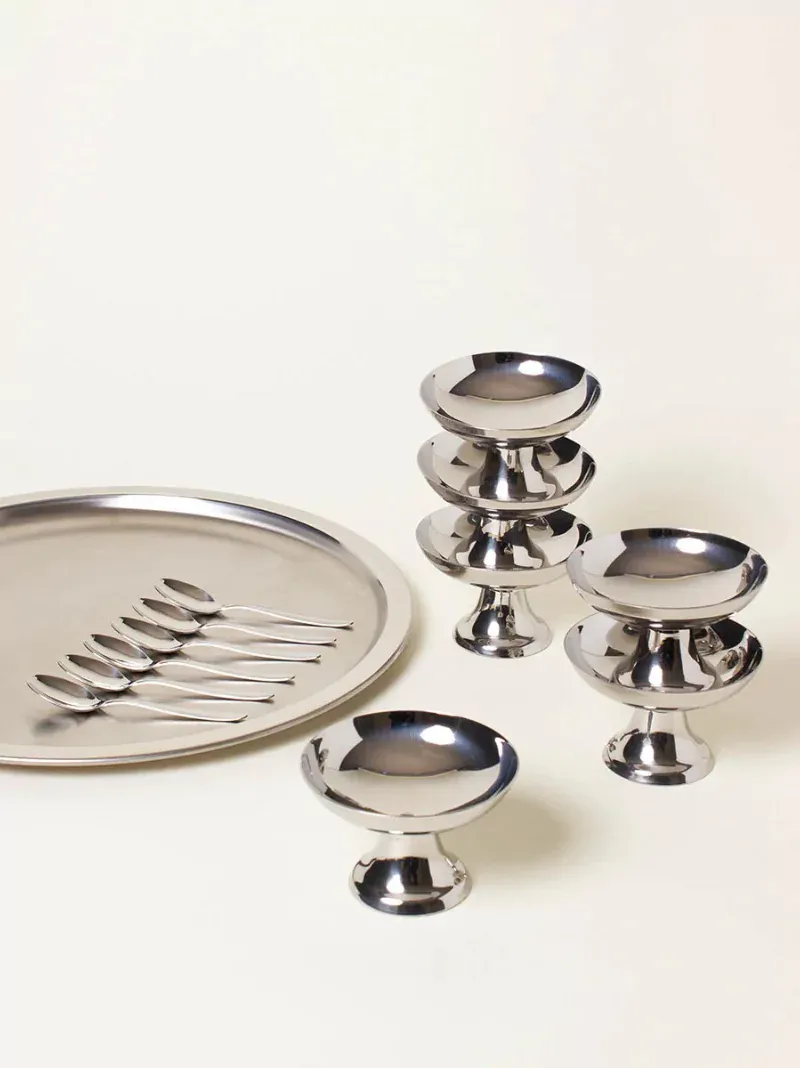 Silver Coupes & Spoons With Tray