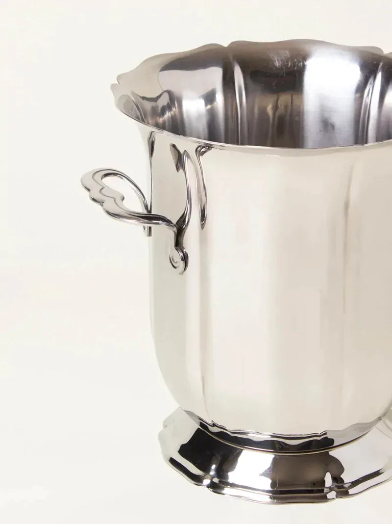 With sleek contours and intricate handle detailing, this vintage silver wine cooler is as elegant as the bottle it holds. A timeless statement, designed to keep your wine perfectly chilled.