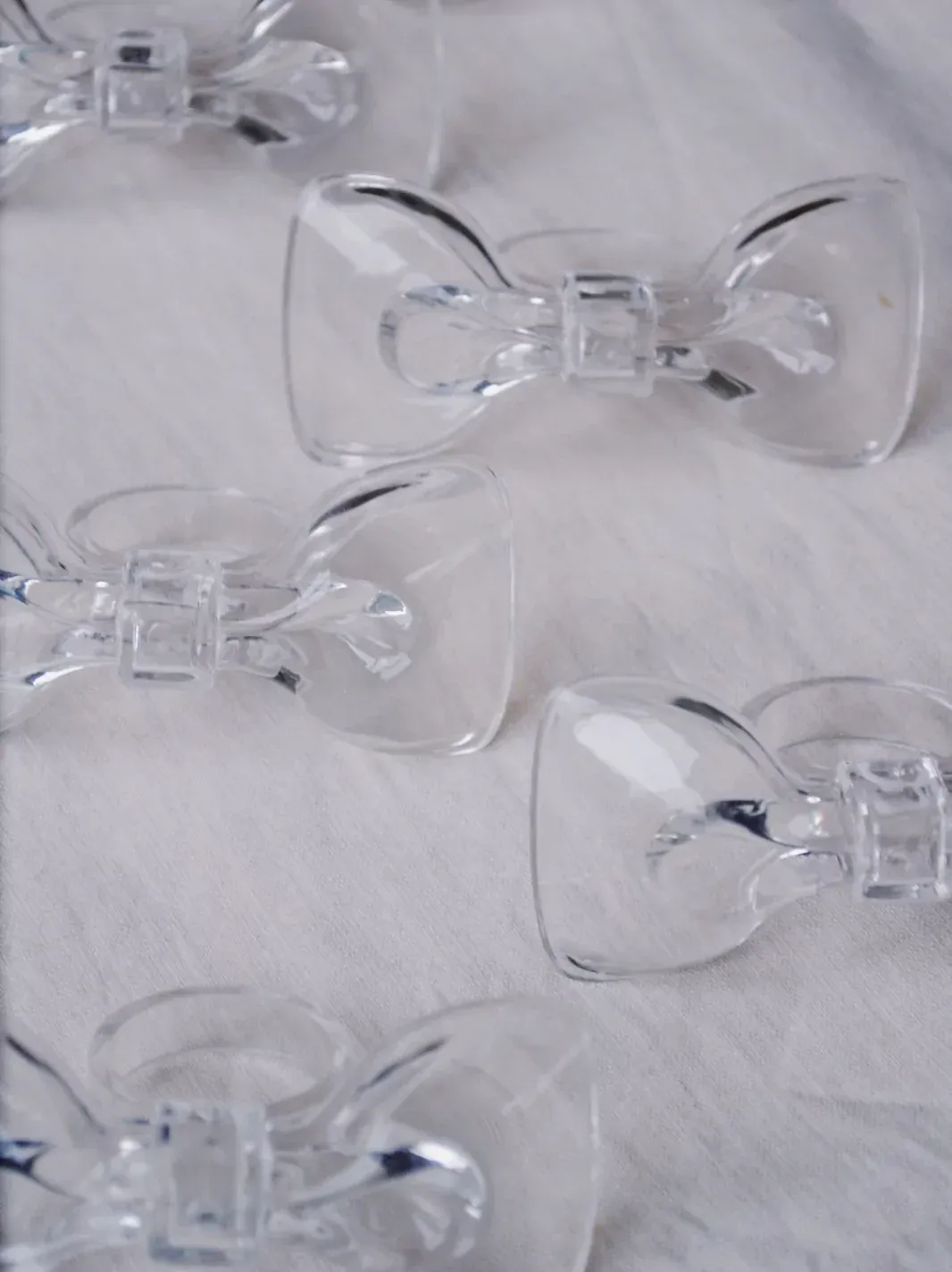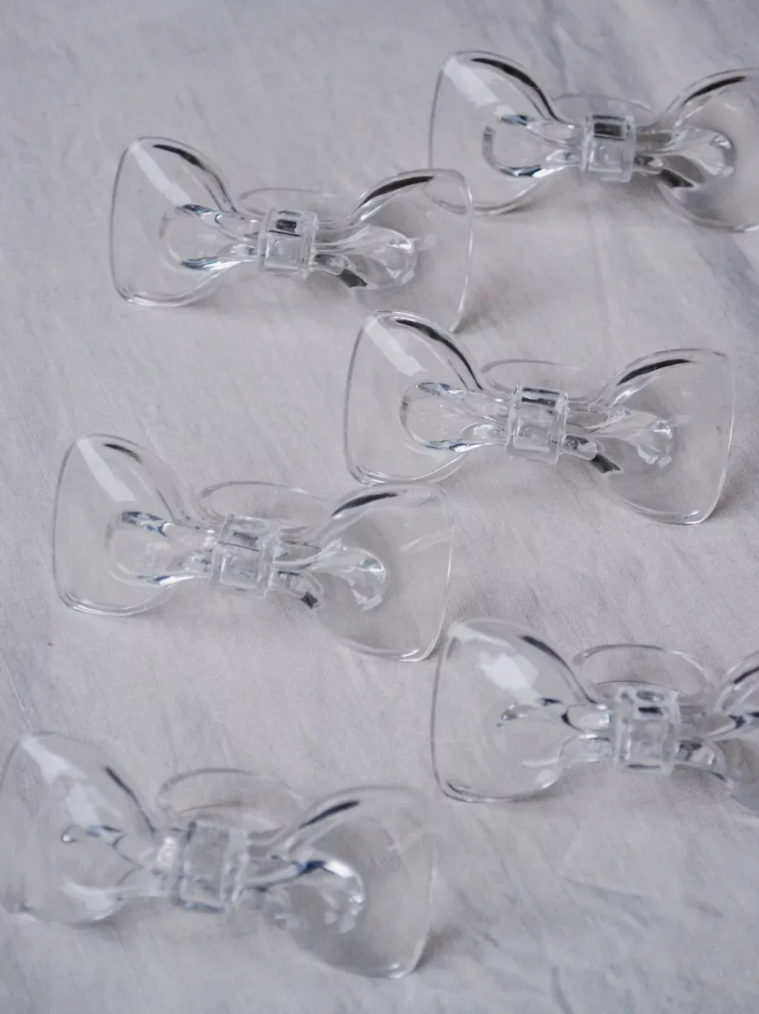 These 1980s vintage lucite napkin rings feature an adorable bow, sure to add a touch of sweetness to their table decor. The perfect gift for the lover of all things vintage.