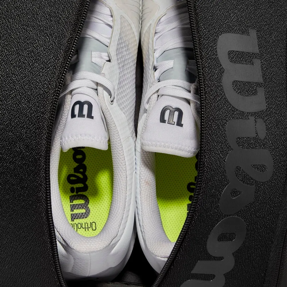Greatness is one of many words synonymous with Roger Federer. Joining the pro circuit in 1998, he’s played in four decades as a professional. His historic run has captured the eyes of fans for many years, and this version of his Wilson bag line does that too, capturing the eyes of anyone who sets their eyes on it. Two racquets can be stored in the rear back pocket, with a lock zipper design preventing the racquet from having unwanted movement in the bag. The main compartment has a pocket that can hold a tablet and can store shoes, apparel, and gear. There are pockets on both sides, and the left pocket has Thermoguard making it suitable for storing drinks and food. Ergonomic shoulder straps, chest straps, and cushioned back pads reduce weight. The material has a unique feeling of tension and uses a polyester bonding fabric with excellent shape stability. The Roger Federer signature at the side adds a classy touch from an all-time great and classy player.